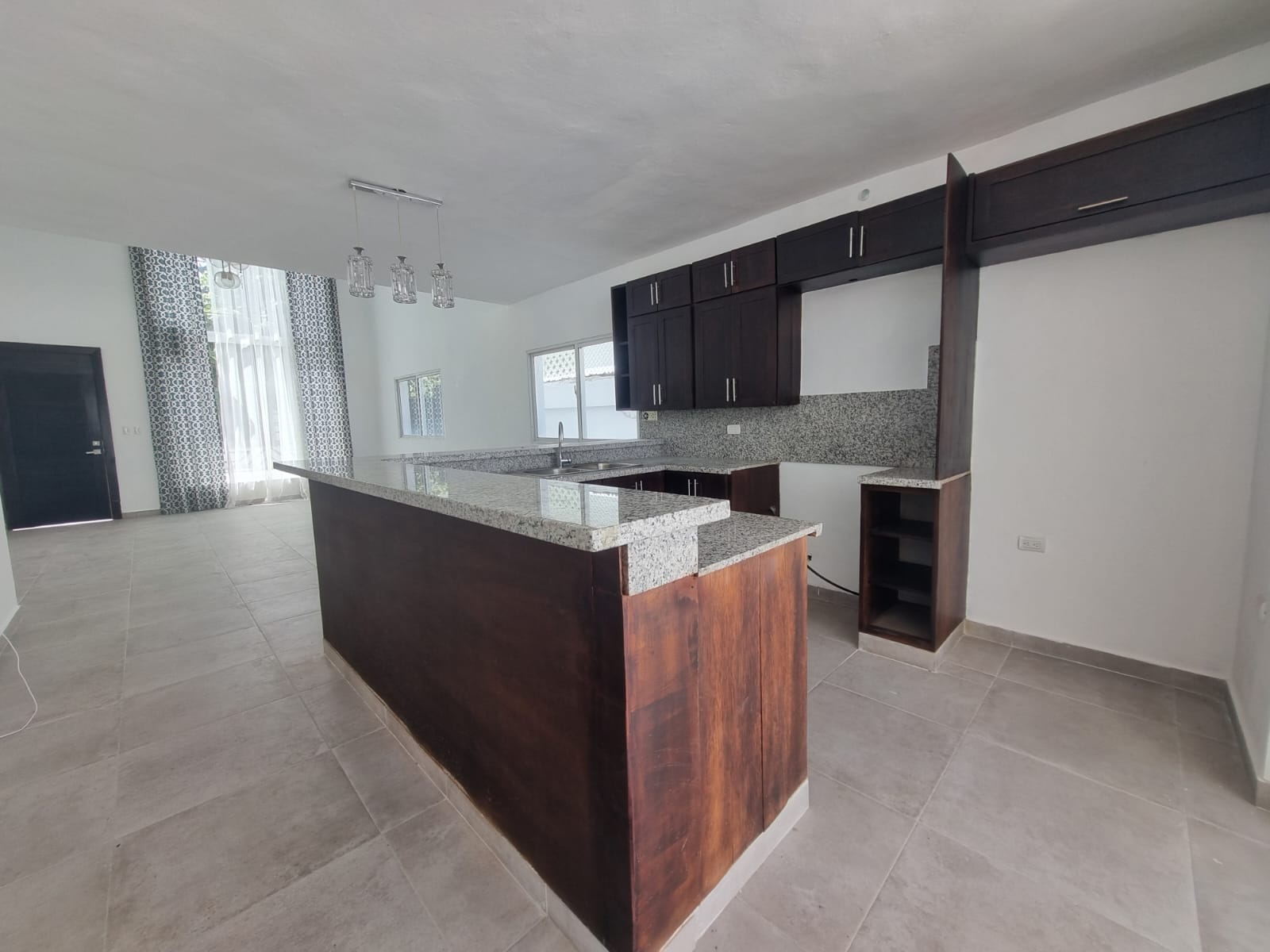 Open-concept kitchen, living, and dining area