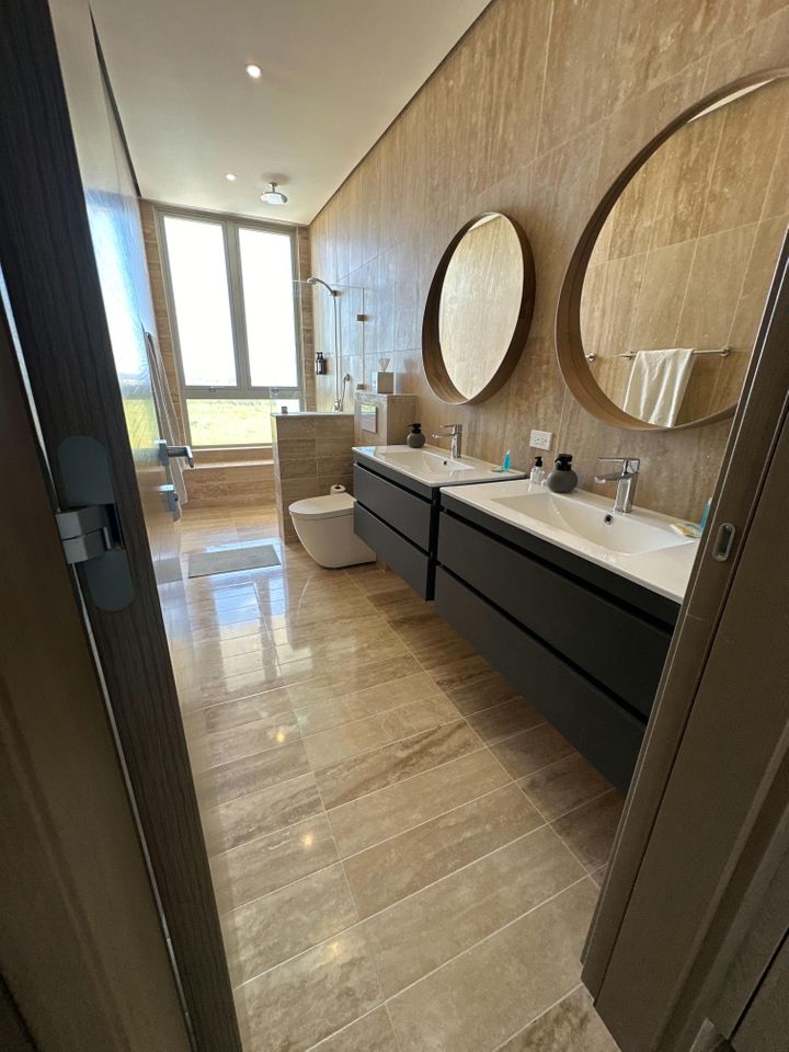 Marble Flooring throughout the apartment, adding an elegant touch.