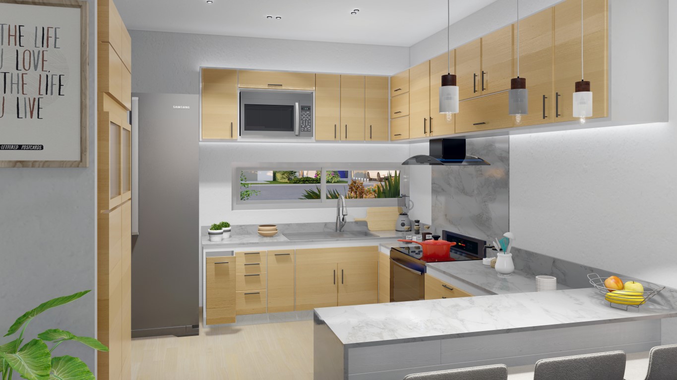 • Modular kitchen with a wide and comfortable space to have breakfast.