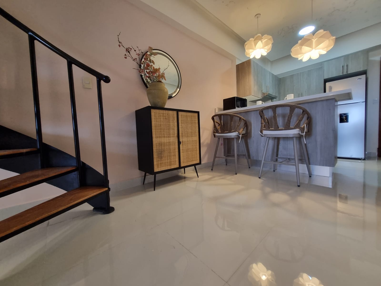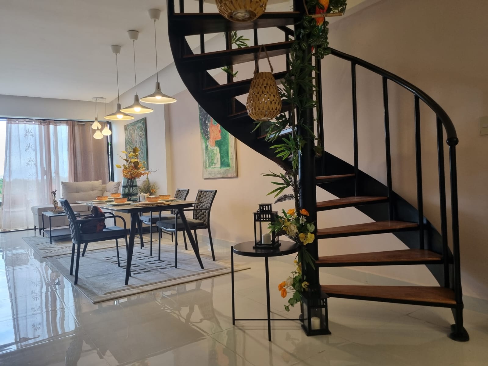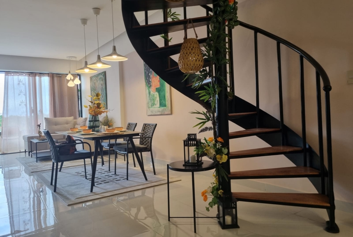 This spacious two-level penthouse, situated on the 3rd floor, blends contemporary design with comfort: