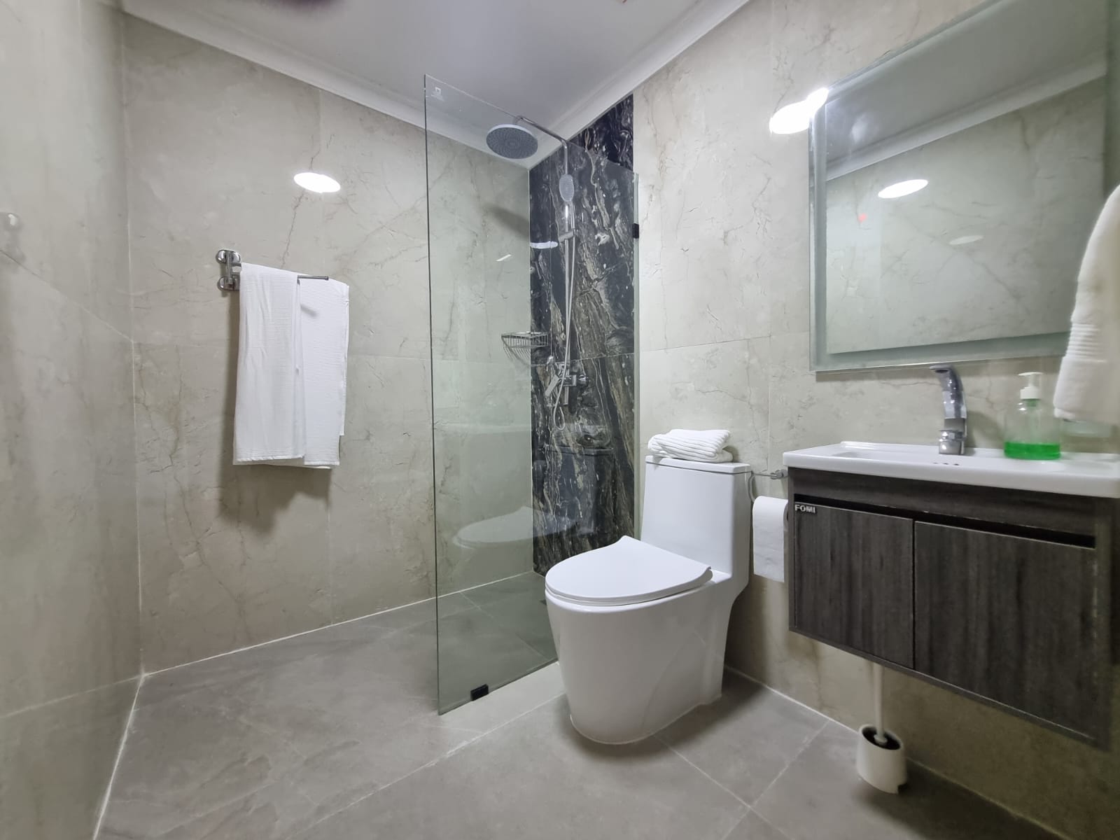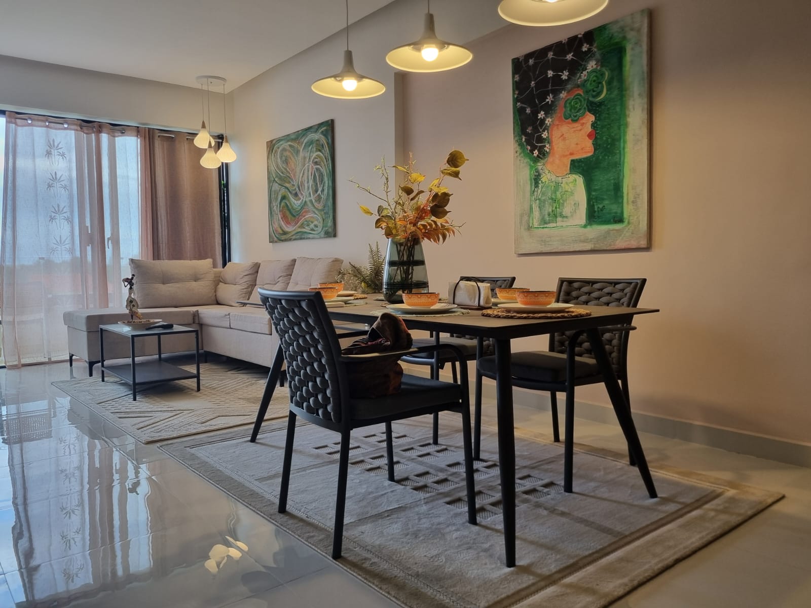 - Porcelain Floors: Durable and elegant flooring throughout the penthouse.
