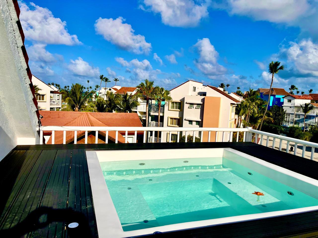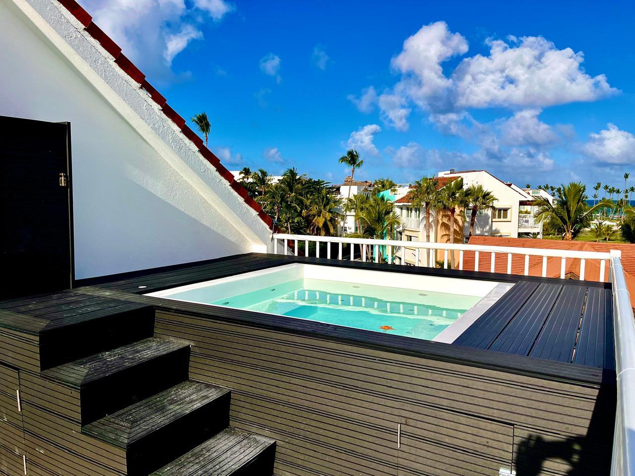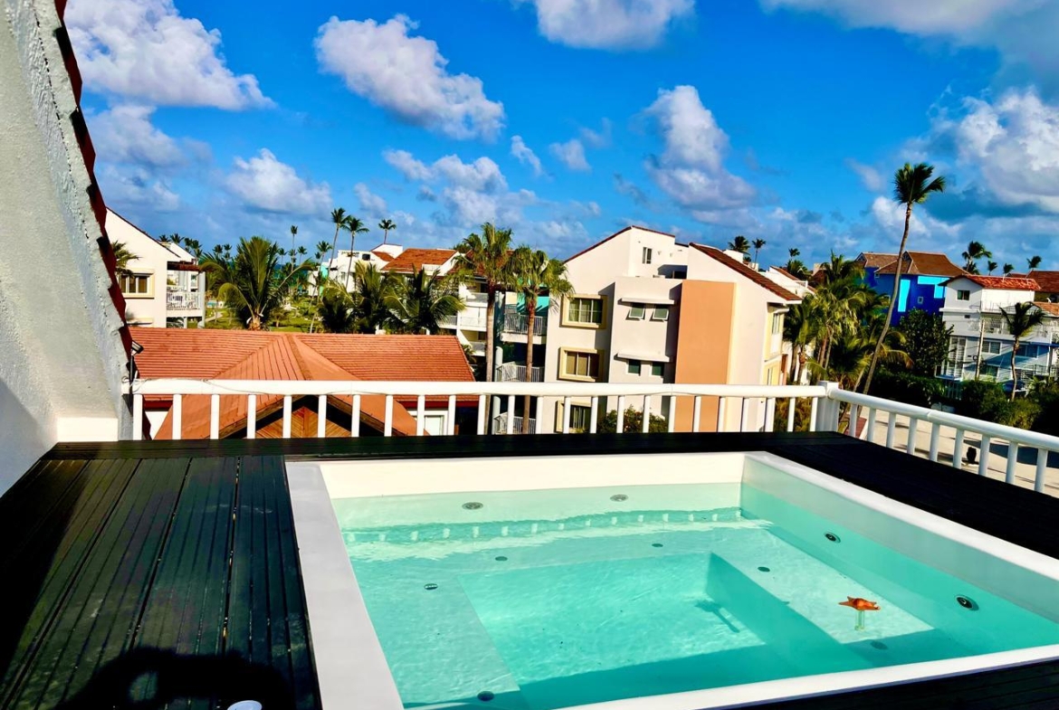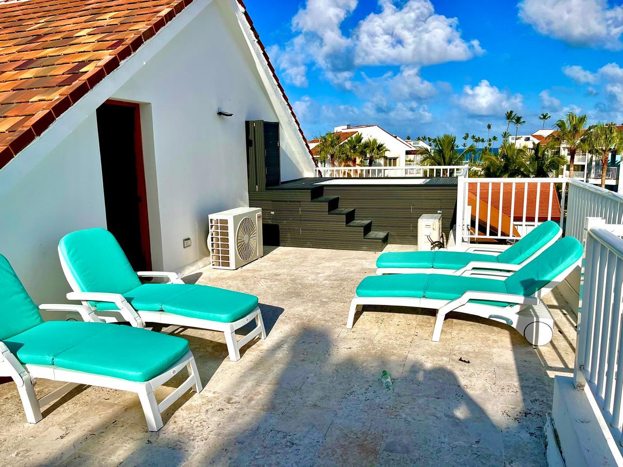 About the Property This exclusive 2-bedroom, fully furnished penthouse in Playa Turquesa is located at the commercial area and offers luxurious beachfront living and exceptional rental potential. The property boasts great garden and beach views from the balcony and rooftop terrace and spacious living areas, making it an ideal vacation home or investment property. Playa Turquesa is a gated community loved by beachgoers and investors alike, known for its direct access to Bavaro Beach, its lively bar and restaurant scene, and reliable rental income.