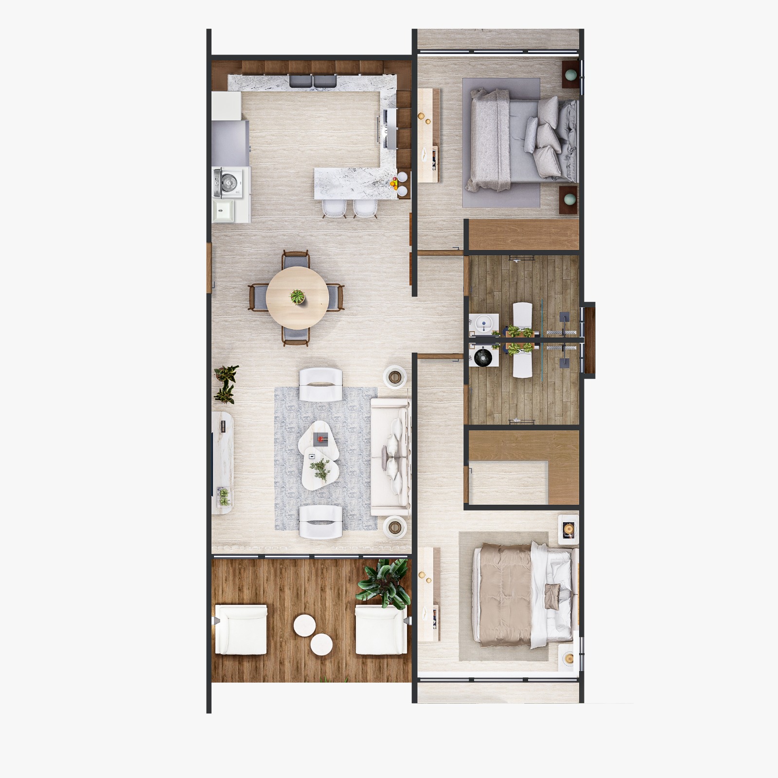 - Exclusive Terrace: 46.83 m² of fully roofed and private outdoor space.