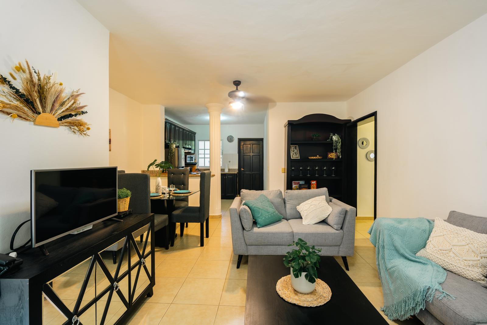 Welcome to Santa Maria del Mar II, a secure gated community in the heart of El Cortecito, Bávaro–Punta Cana. Just a short walk from the beach and many other touristic amenities, this spacious condo offers a relaxed Caribbean lifestyle with strong rental potential.